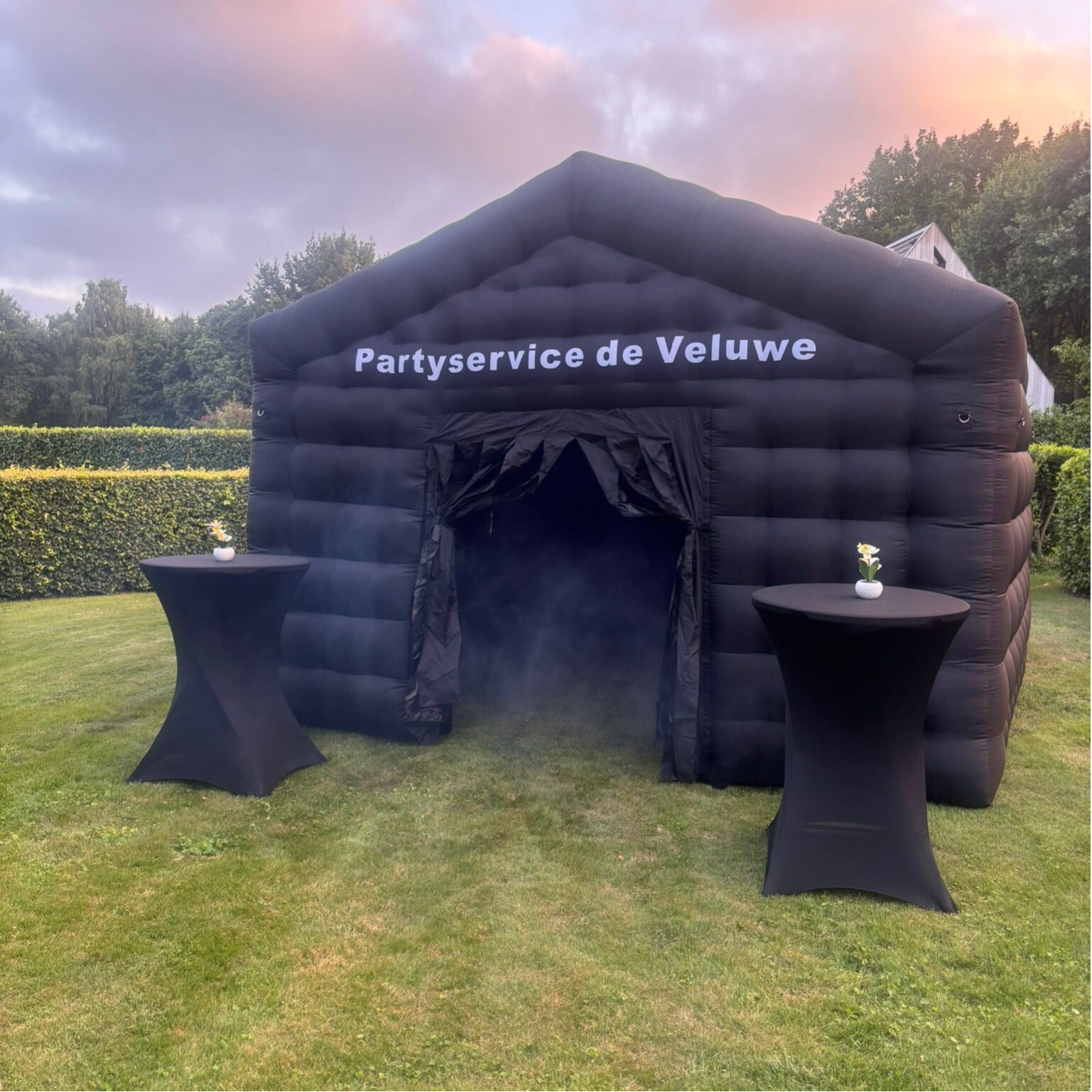 - Opblaastent van 4 bij 6 meter, geschikt voor 30 tot 35 personen